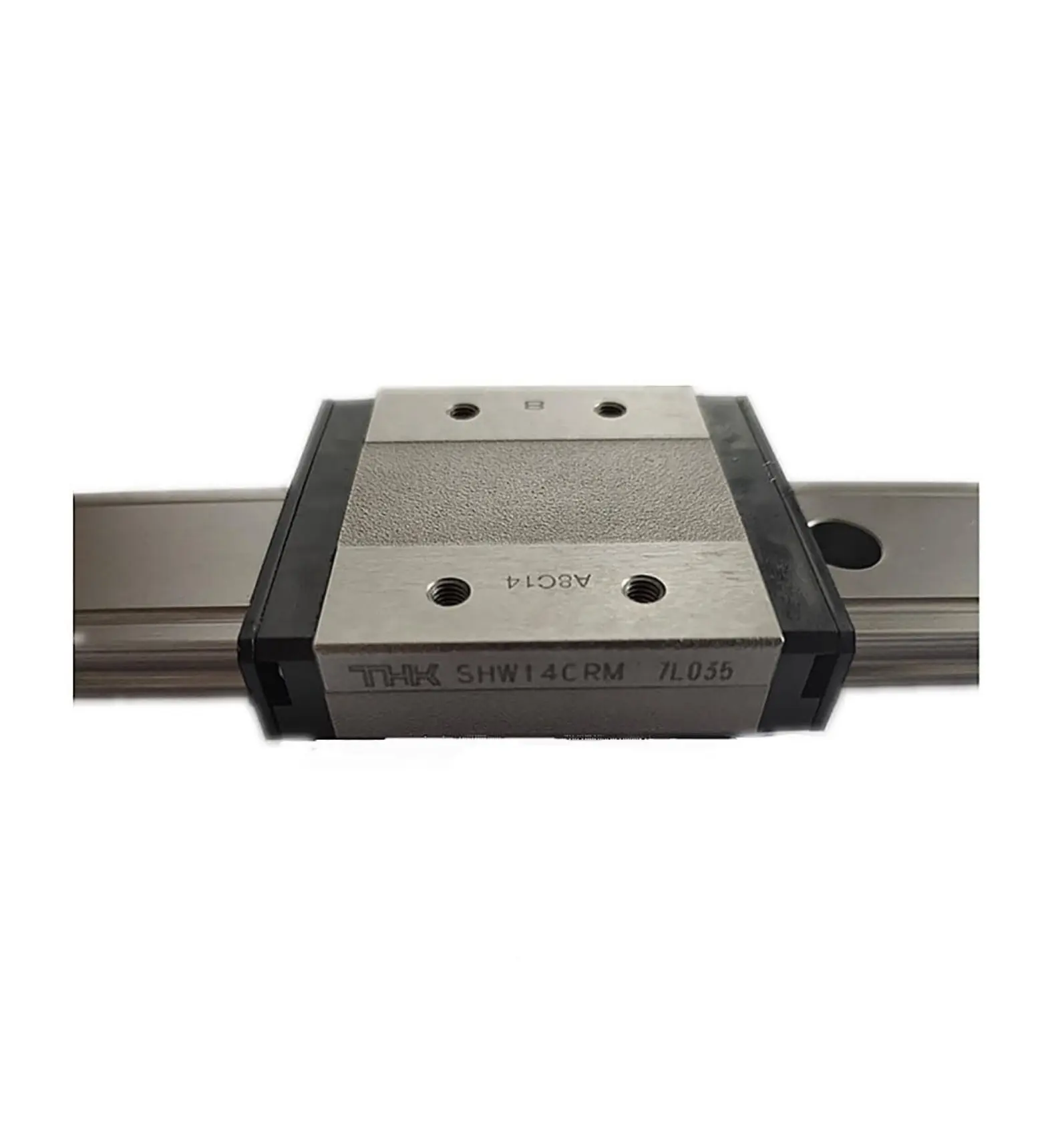 Wide Guide SHW-14CRM wide, low-center-of-gravity LM guide block featuring 4-way equal load capability and stainless-steel construction. Uses caged-ball circulation for low noise, high speed, long service life, and reduced dust. Block has tapped mounting holes (CRM type) and optional seals (UU/SS). Grease-lubricated, stainless-steel, corrosion-resistant with normal preload and accuracy grade options. Suitable for precision stages and industrial equipment.