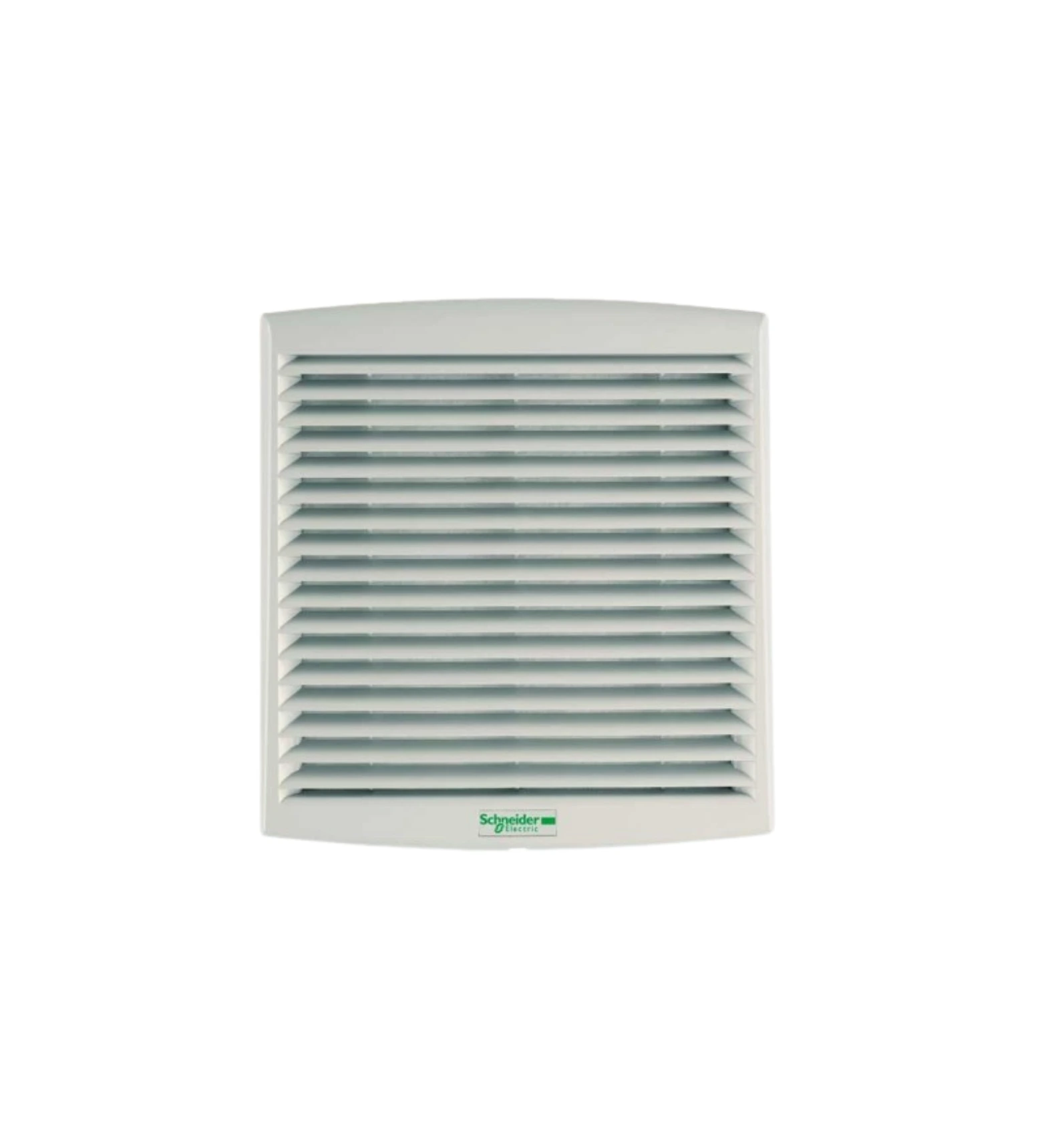 Is an outlet grille designed for thermal management in electrical enclosures. Manufactured by Schneider Electric, it features a 223 x 223 mm cut-out and external dimensions of 268 x 248 x 18 mm. Made from injected thermoplastic (ASA PC) in RAL 7035 grey, it offers IP54 protection against dust and water. The grille includes a G2 M1 synthetic standard filter and support frame, suitable for use with ClimaSys CV fans and Prisma P enclosures. It can be mounted using clips or screws, ensuring easy installation and maintenance-free operation.