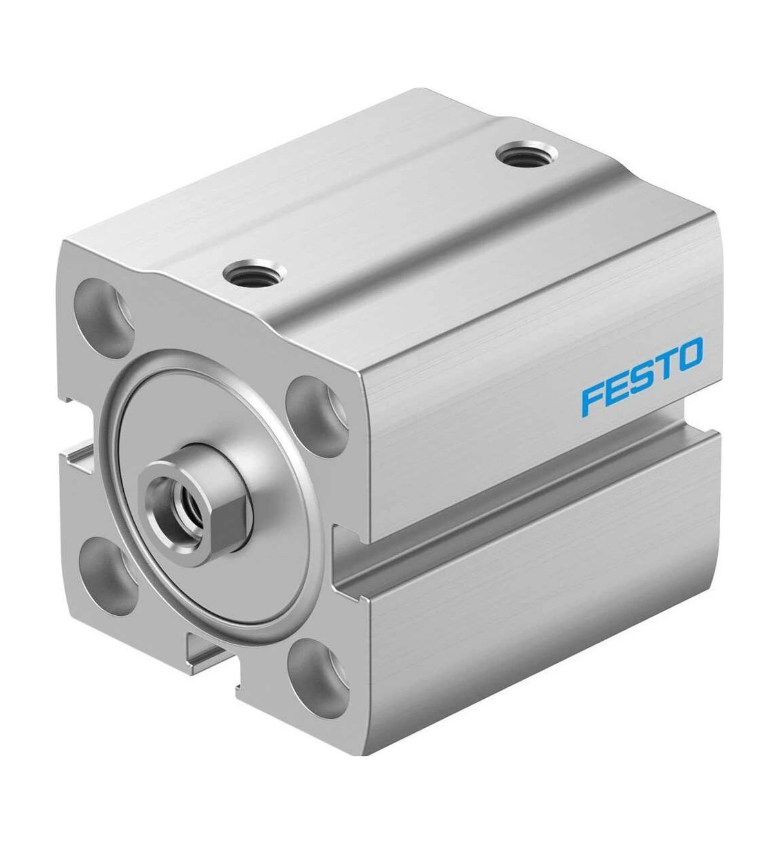 Is a compact, double-acting pneumatic cylinder from Festo's ADVU series. It features a 25 mm bore and a 15 mm stroke, designed for space-saving applications requiring precise linear motion. The cylinder includes elastic cushioning rings at both ends, ensuring smooth operation and reduced impact forces. Its robust construction with an aluminum body and stainless steel piston rod makes it suitable for various industrial environments. The cylinder supports proximity sensing and has a male-threaded piston rod end for versatile mounting options. Operating pressure ranges from 1 to 10 bar, and it functions reliably within a temperature range of -20°C to +80°C.