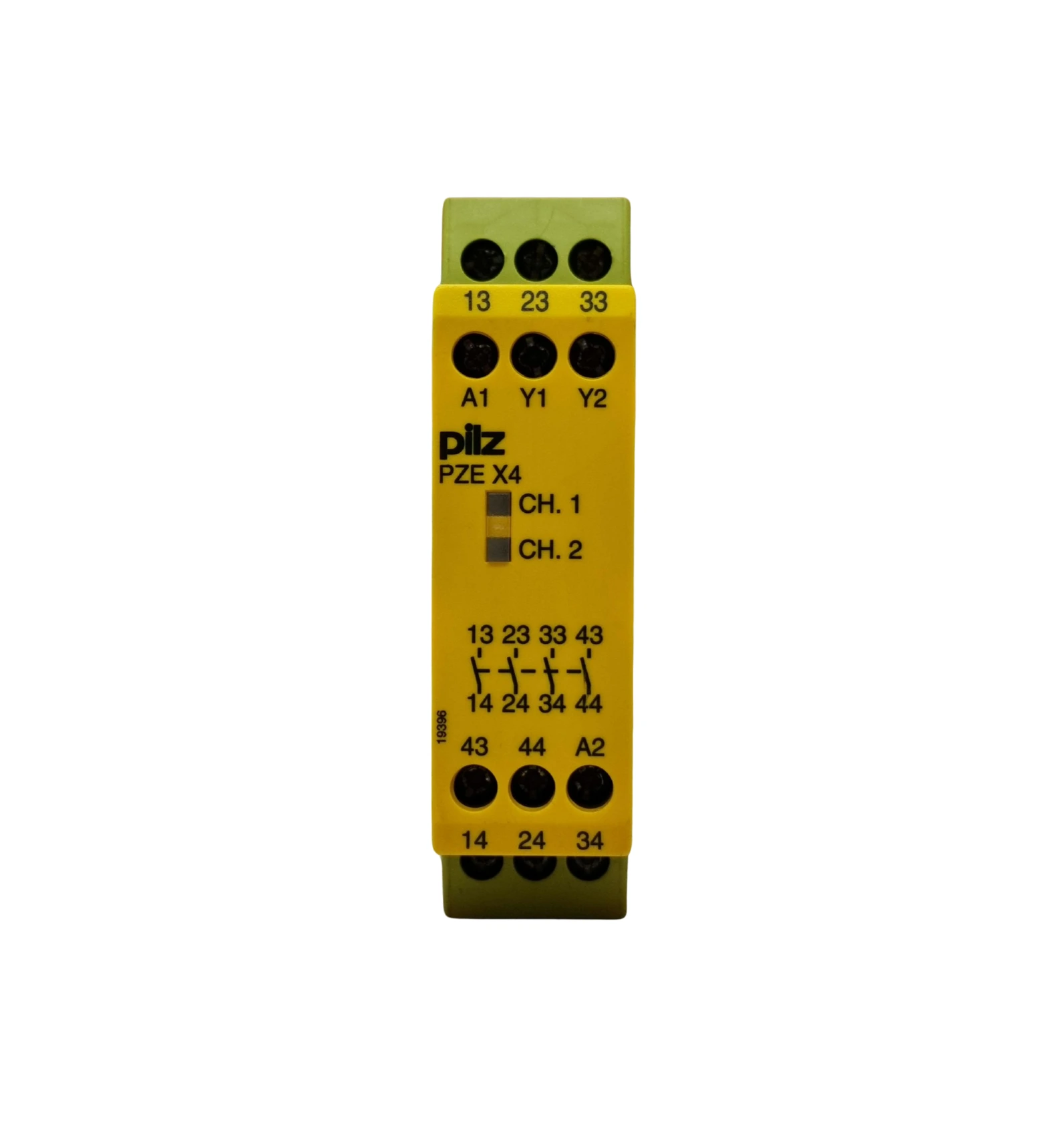 The PILZ PZE X4 is a contact expansion module from the PNOZ X series, designed to increase the number of safety contacts in a control system. It features 4 normally open (NO) contacts, operates on a 24V DC supply, and is mounted on a DIN rail. This module is used as an expansion unit for safety relays or safety control systems with feedback loop monitoring, ensuring maximum safety with minimal space requirements. It includes screw terminals for secure connections and complies with standards EN60204-1, EN62061, EN954-1, and VDE0113-1. The PZE X4 is suitable for various safety applications, offering reliability and robustness.